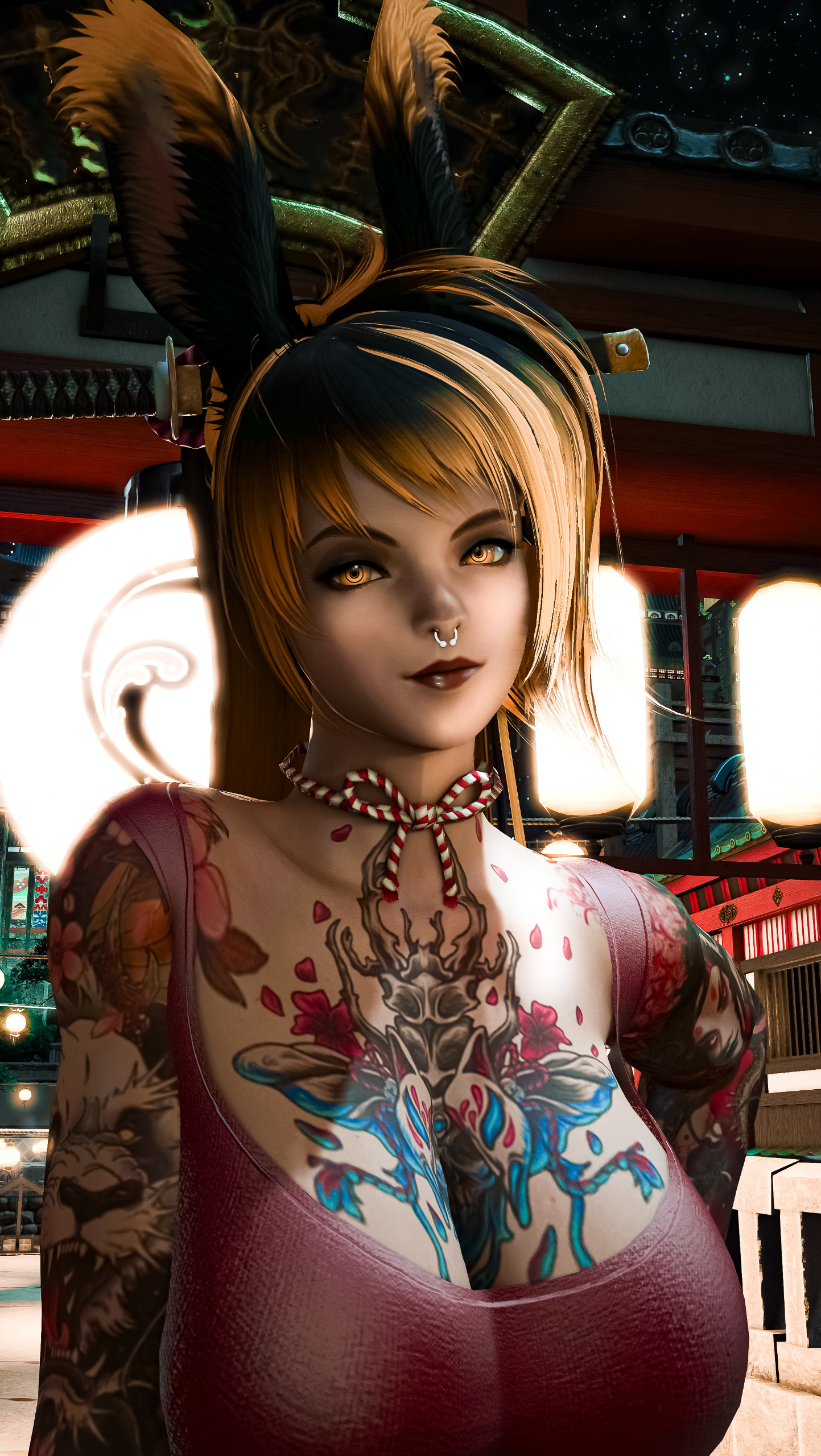 Lore: Midori is a miqote created by an adventurer from the source to the first, who fell in love with Titania, she is part fae, part kitsune after her encounter with a Samurai named Erza, who fell deeply in love with each other, now these two have an inseparable bond, and are always together no matter what.